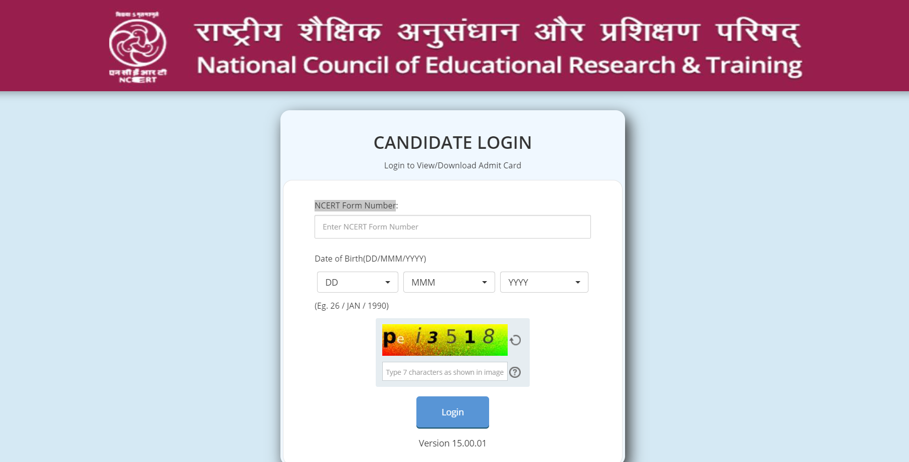 Candidates will be redirected to login with their credentials such as NCERT number form number and date of birth.