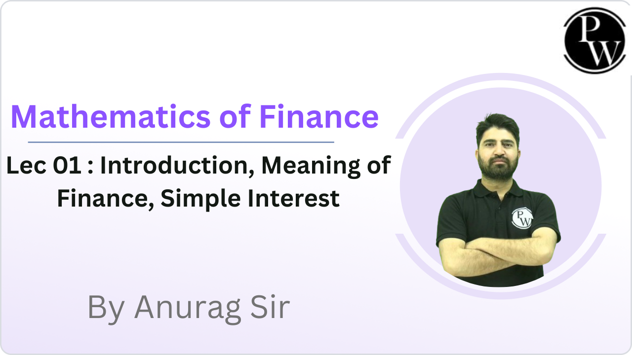 Mathematics of Finance 01 : Introduction || Meaning of Finance || Simple Interest