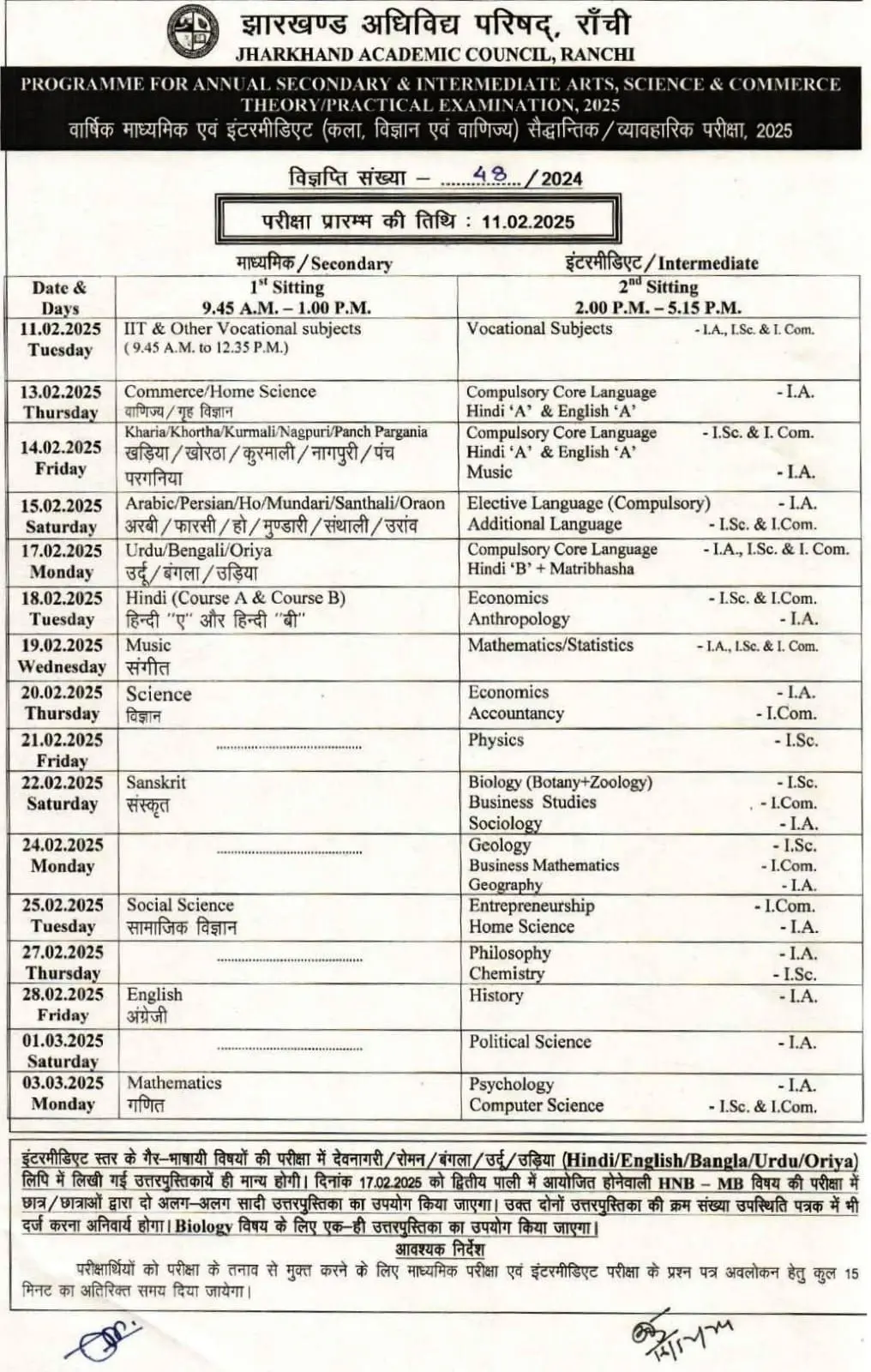 | JAC Class 12 Commerce Date Sheet 2025 | |