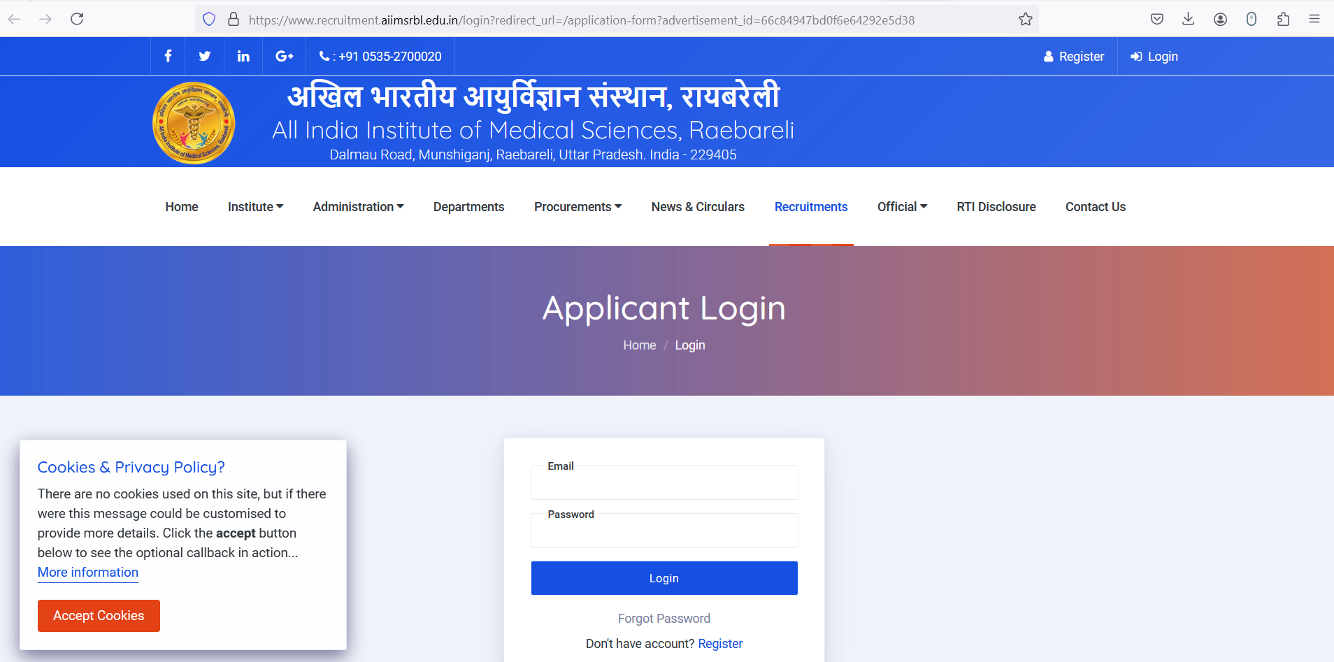 - For online application queries: aiimsrblprogrammer@gmail.com