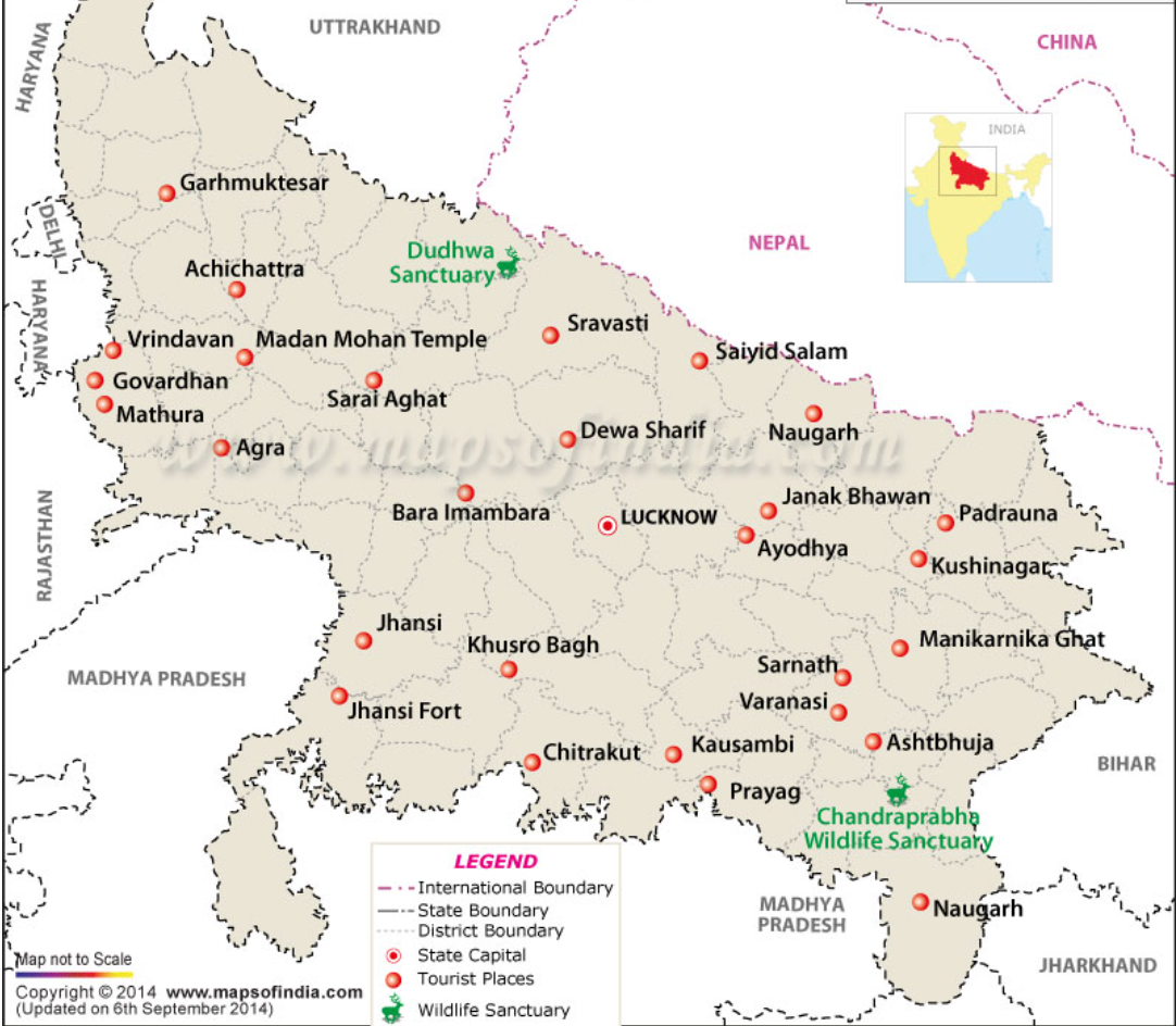 To help people in planning their trip, having famous cities in Uttar Pradesh map can be an incredibly useful tool to guide people. This will allow the individuals to easily locate each city and explore the best routes to cover the maximum number of destinations in one trip.