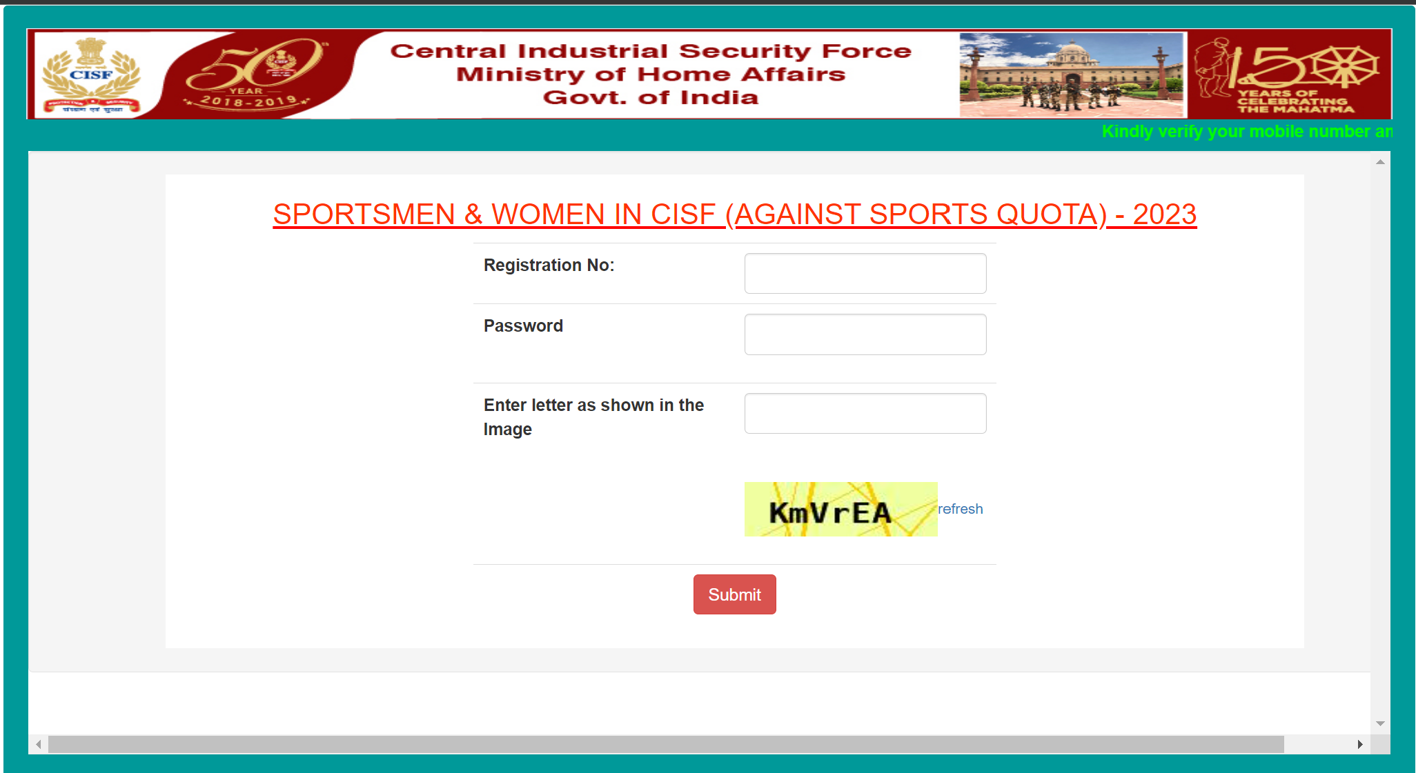 Candidates must submit the CISF HC Sports Quota application 2023 online only at the official website of CISF. No other mode for the submission of online applications will be entertained.