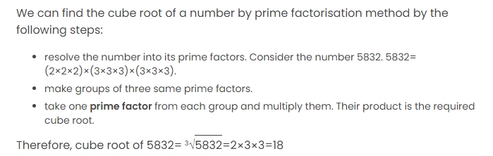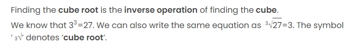 The concept of cube roots is then introduced, where students learn that the cube root of a number is a value that, when multiplied by itself three times, gives the original number. Methods to find the cube roots of perfect cubes using prime factorization are covered, along with estimation techniques.CBSE Class 8 Maths Notes Chapter 6 PDF