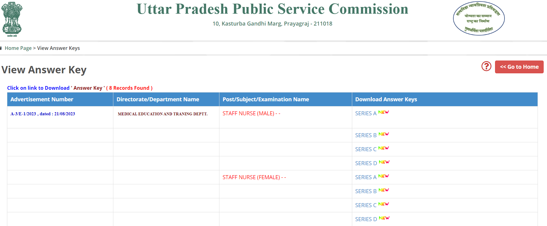 Candidates can download the UPPSC Staff Nurse Answer Key 2023 from uppsc.up.nic.in.