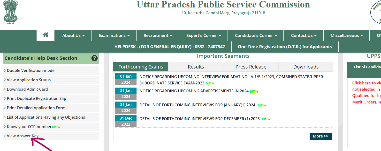 Candidates were allowed to download the answer key from the direct link provided above or by visiting the official website of the Uttar Pradesh Public Service Commission. Here is the step-by-step process to download the UPPSC Staff Nurse Answer Key 2023 from the website for future reference: Step 1: Go to the official website of UPPSC at ‘https://uppsc.up.nic.in/’. Step 2: On the home page look for the ‘Candidate’ section as shown below. Step 3 : In this section click on the ‘View Answer Keys’ tab. Step 4: The latest series-wise 'UPPSC Staff Nurse Answer Key PDFs' will be available for download. Step 5: For direct UPPSC Staff Nurse Answer Key PDF 2023 click on the set-wise link provided above. Step 6: Download the UPPSC Staff Nurse Answer Key 2023 and match responses as marked in the OMR sheet.