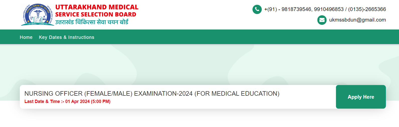 Uttarakhand Nursing Officer Vacancy 2024 notification released by Uttarakhand Medical Service Selection Board (UKMSSB) announcing fresh application dates for 1455 Male and Female Nursing Adhikari positions. After much waiting, the application process for this coveted position officially commenced on 12 March 2024 at https://ukmssb.org/ .