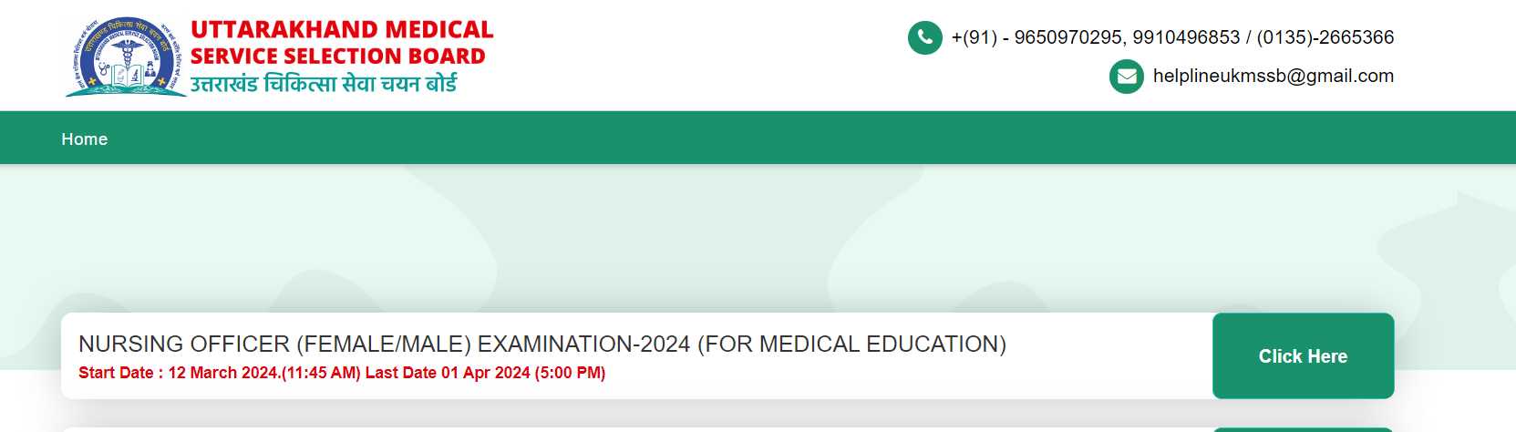 The latest notification on Uttarakhand Nursing Officer Vacancy Recruitment 2024 was published on 11 March at the official website of UKMSSB. The application link is now active and candidates can access it till the last date mentioned in the UKMSSB Nursing Officer notification.