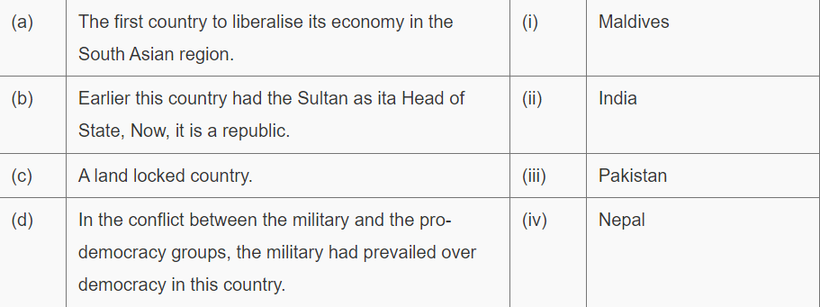 OR ( b) “SAARC has taken a major regional initiative in South Asian States to evolve co-operation through multilateral means.” Justify the statement with two examples.22. Describe any four circumstances that led to protests against the Congress Government during 1974 – 1975.