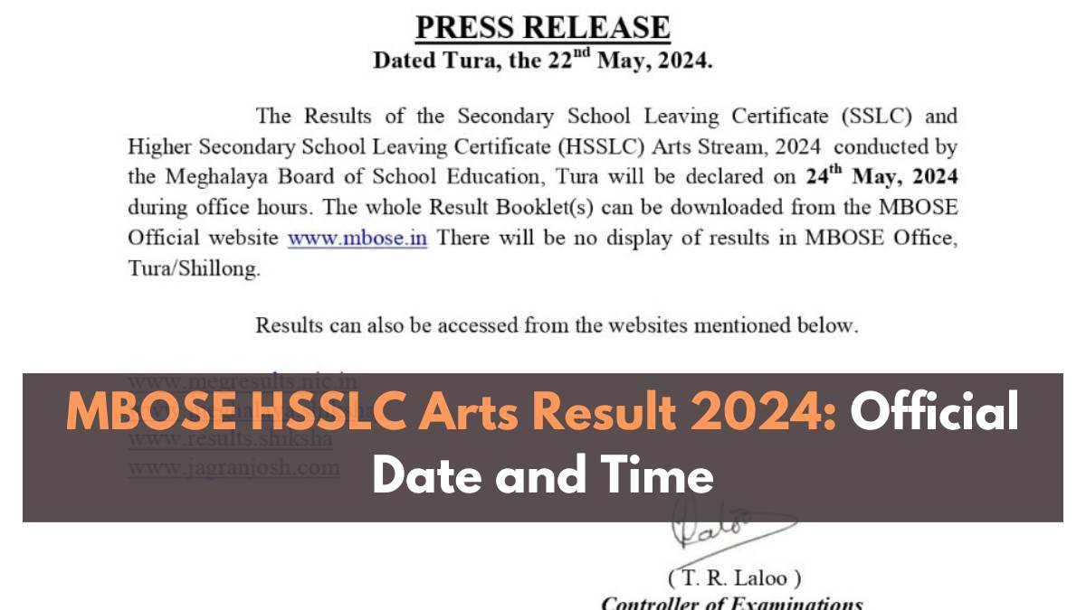 Meghalaya HSSLC Arts Result 2024: The Meghalaya Board of School Education (MBOSE) will announce the Meghalaya HSSLC Arts Result 2024 today, May 24, 2024 . Students who appeared for the Class 12th Arts examination can now access their results on the official MBOSE website, mbose.in.