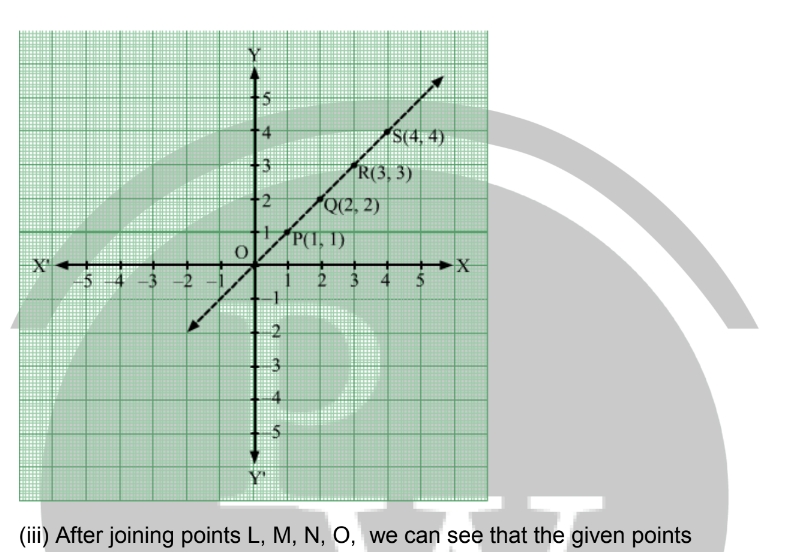 (ii) P(1, 1), Q(2, 2), R(3, 3) and S(4, 4)