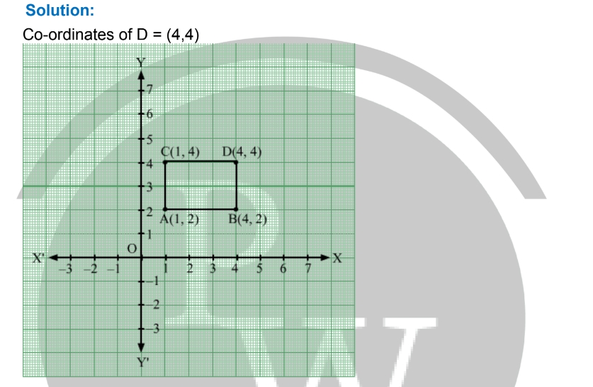 6. Locate the points A (1,2), B (4,2) and C (1,4) on a graph sheet taking suitable axes. Write the coordinates of the fourth point D to complete the rectangle ABCD.