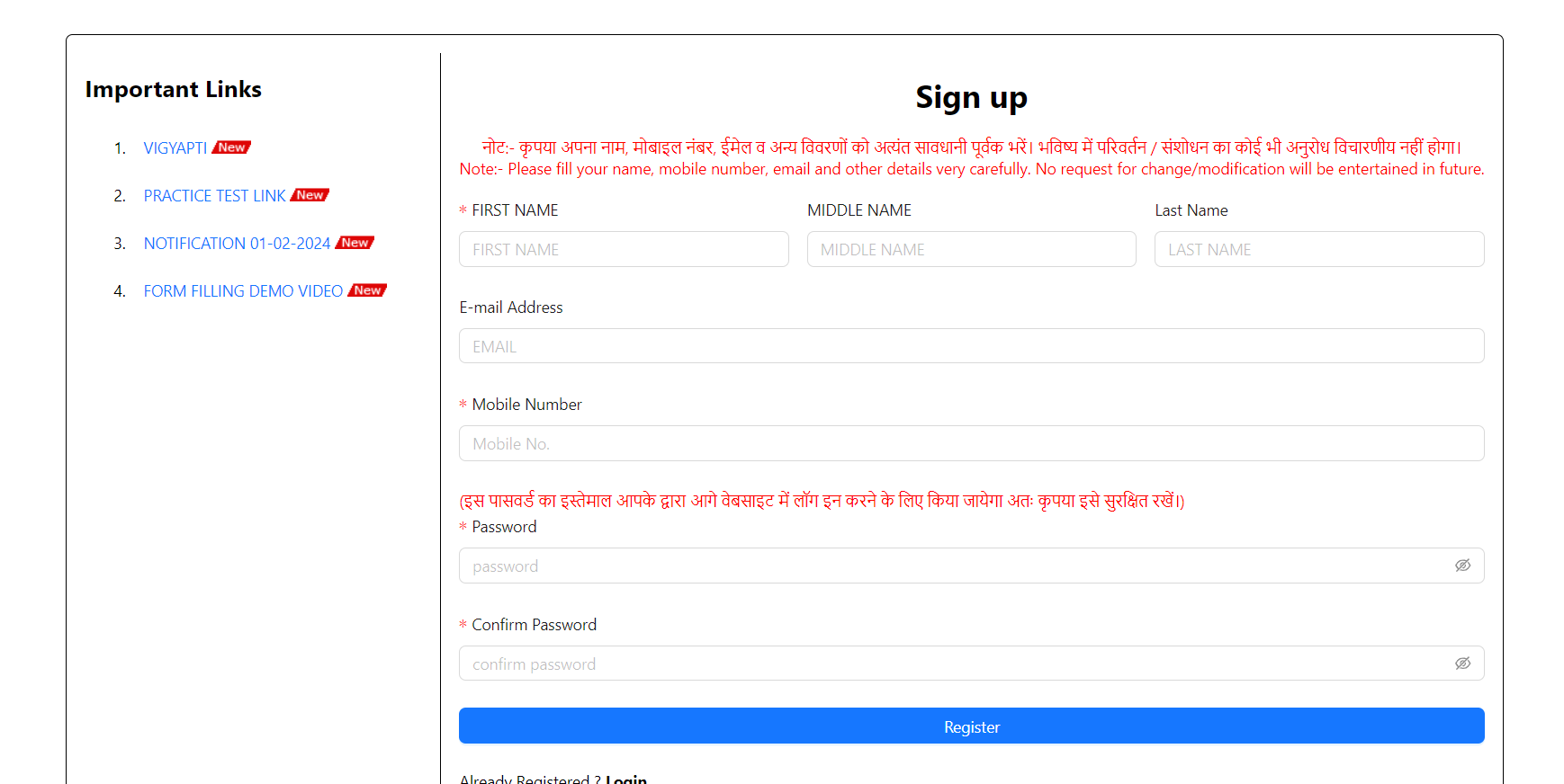 1. Candidates have to log in with Mobile Number and password.