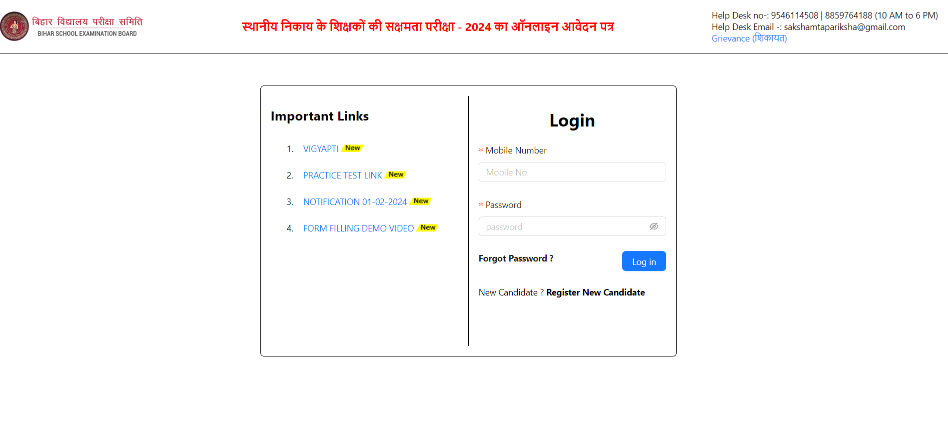 The BSEB Sakshamta Pariksha 2024 Online Application requires candidates to register by providing their initial name, email address, cellphone number, and password, which will be created. To log in later, candidates must update their password.