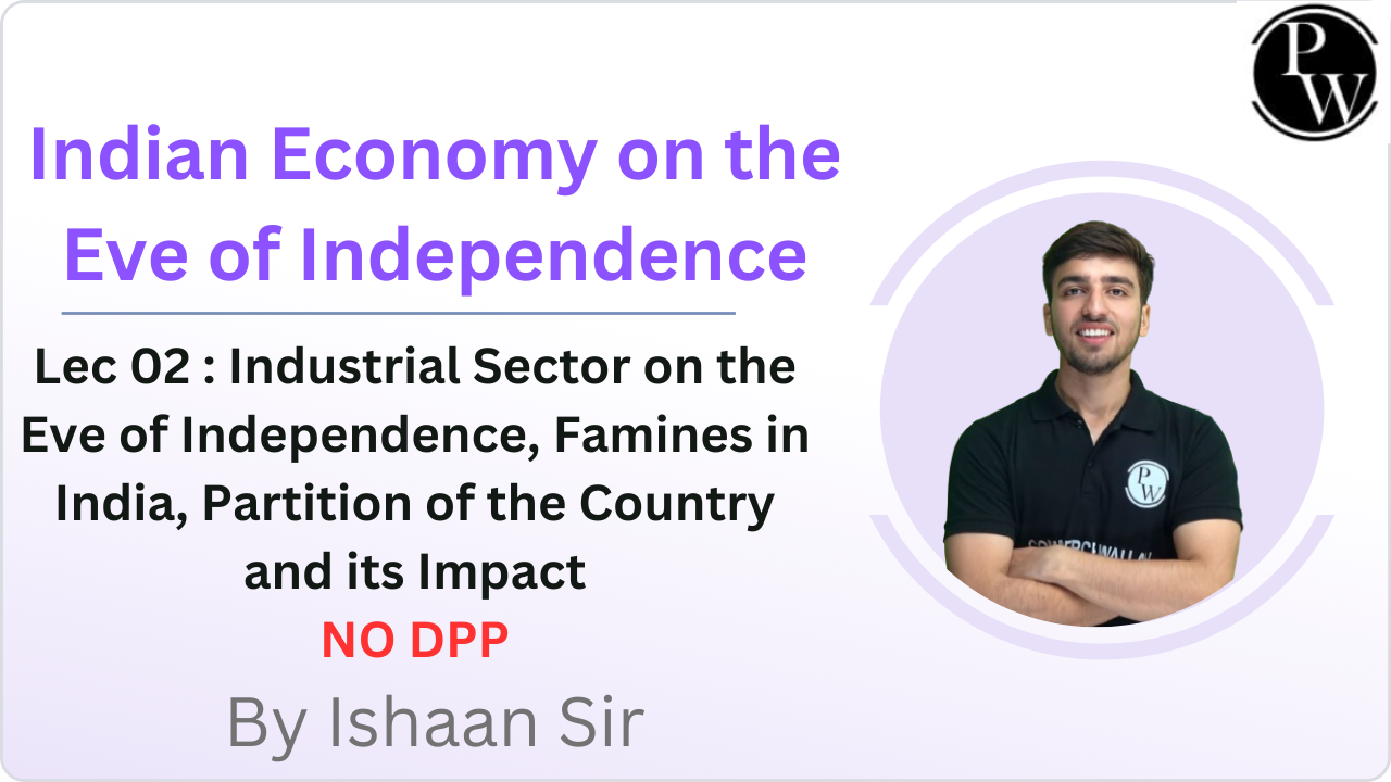 Indian Economy on the Eve of Independence 02 : Industrial Sector on the Eve of Independence, Famines in India, Partition of the Country and its Impact || NO DPP